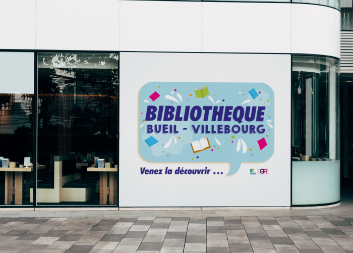 Conception d’un panneau de signalétique pour la bibliothèque de Bueil, Villebourg.