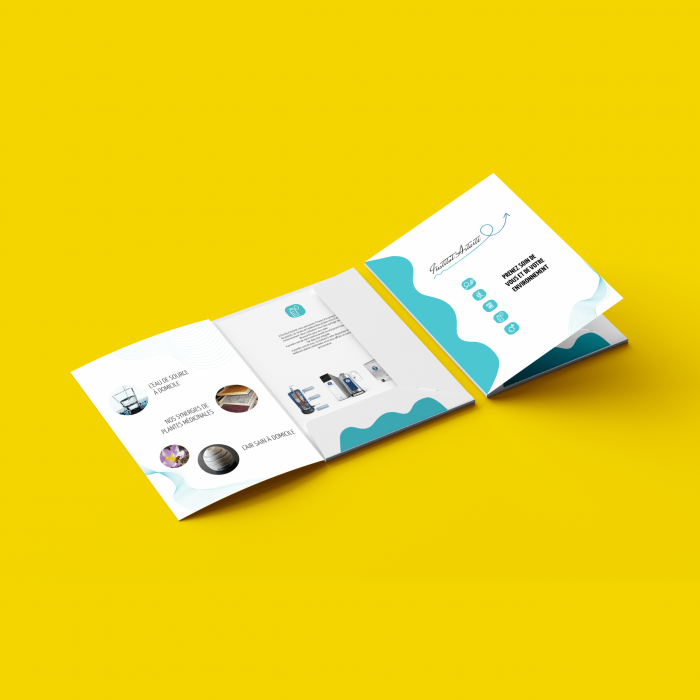 Conception et réalisation des pochettes à rabats de l’Institut Astarté sur la partie « soins de l’eau ».